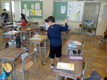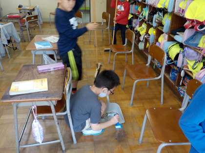 リラックスタイムに、進んで教室を掃除している呉羽っ子たちです。