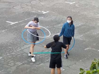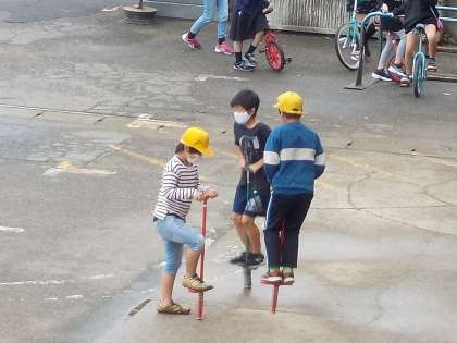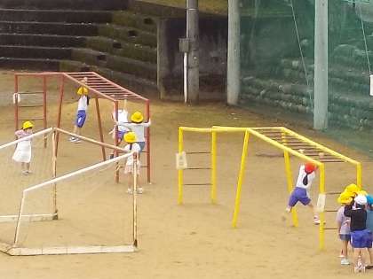 雲の切れ間から太陽が顔を出しました。たくさんの呉羽っ子がグラウンドに出てきました。