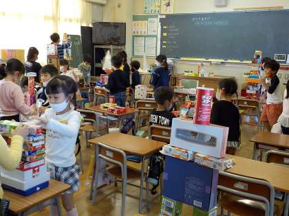 上・・・1組:算数「かたちあそび」