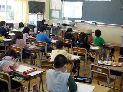 上・・・1組:学級活動「よいしせいをしよう」