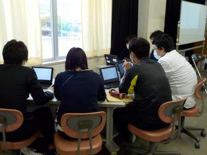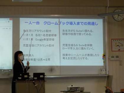富山市教育センターより3名の講師の方に来校いただき、1人1台端末導入に向けて、校内研修を実施しました。まずは、先生が慣れるように取り組んでいきます。