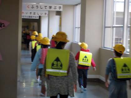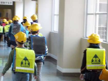 澄み切った青空の下、元気に呉羽っ子が登校してきました。