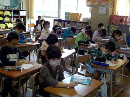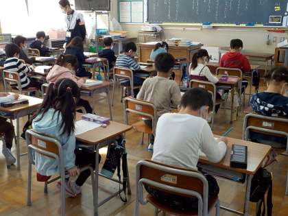 問題を解いた後は、みんなで答え合わせをしています。