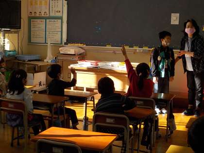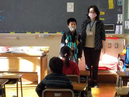 1年生に新しい仲間が増えました。元気よく自己紹介してくれました。大きな拍手が響き渡りました。