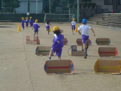 リズムよくハードルを跳び越えたり、スキップをしたりしました。
