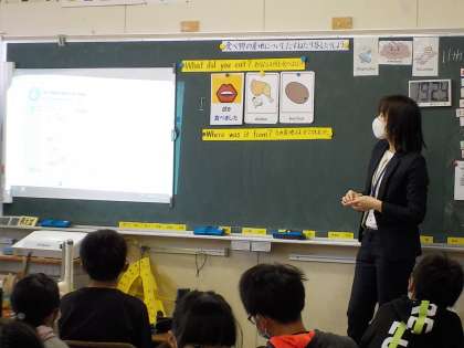 食べ物の産地について尋ねたり、答えたりする学習に取り組みました。