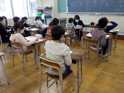 算数では、少人数に分かれて学習しています。今日は、これまでの復習をしました。