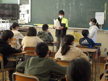 わかたか児童会から各学級に、「感謝の集い」に向けてのお願いが伝えられました。