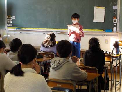 朝の時間を活用して、各委員会が各学級にお知らせをしています。