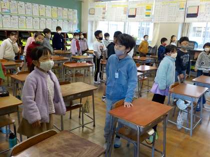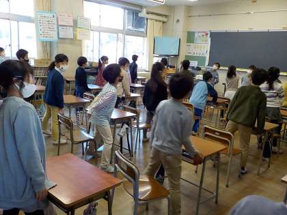 今月の歌「まっかな秋」をリズムに乗って、気持ちよさそうに歌っています。