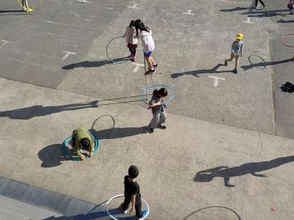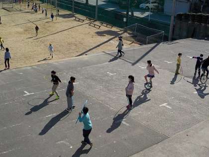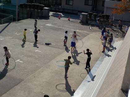 あたたかい陽気に誘われて、呉羽っ子が次々とグラウンドに出てきました。