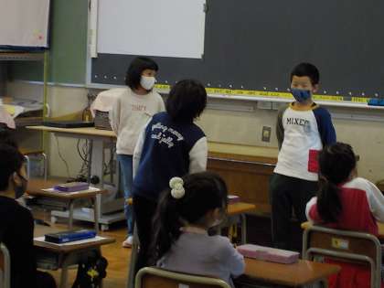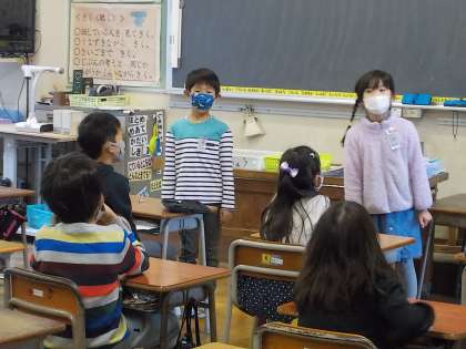 朝の会では、日直のスピーチを楽しそうに聞いています。