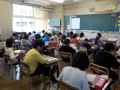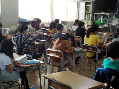 木曜日の朝の学習は、全校読書です。みんなが本の世界に浸っています。