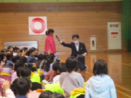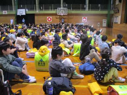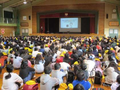 全校一斉下校となるこの日に交通安全の集会を開きました。