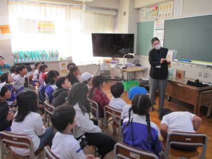 市立図書館の司書の学校訪問が有り、読み聞かせをしていただきました。