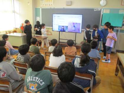 4年生が金曜日の学習公開で行う5年生のプレゼンテーションを参観していました。