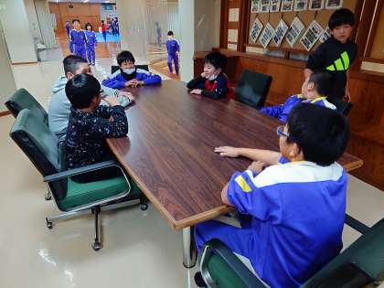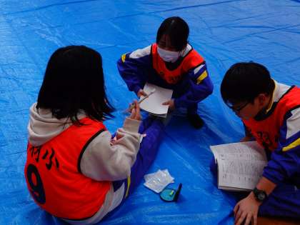 夕食を終え、クラス写真を撮りました。思い思いに寛いでいます。