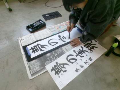 6年 書き初め練習 公開日 2024/12/04 更新日 2024/12/04 6年生の活動 書き初め練習に取り組みました。今回の文字は「夢の実現」。 習字の時間は一切話さず、しんとした教室の中、一文字一文字を真剣に書きました。