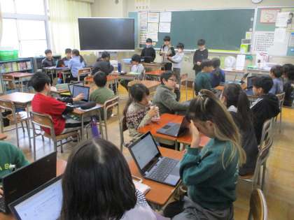 テーマごとに別れて「総合的な学習の時間」のまとめの活動に取り組んでいました。