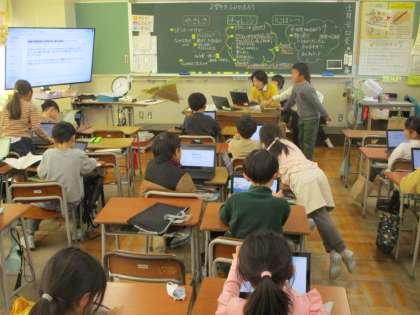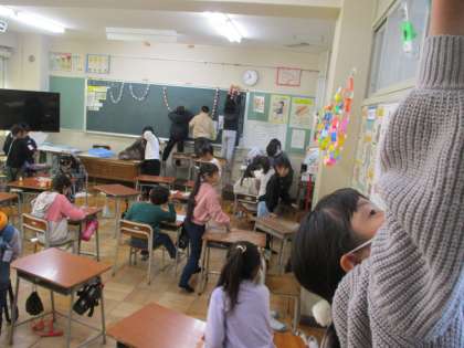4時間目の学習の様子です。3組は月曜に開催する集会の飾り付けに余念がありませんでした。