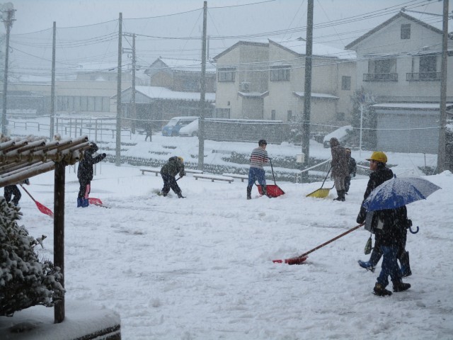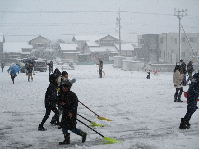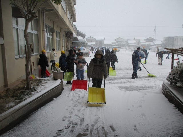 積雪は5cm程度でしたが、5,6年生の有志がかいがいしく除雪に取り組んでくれました。