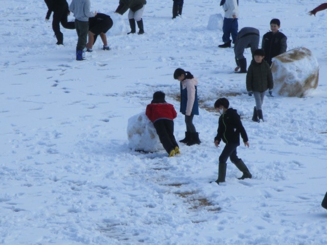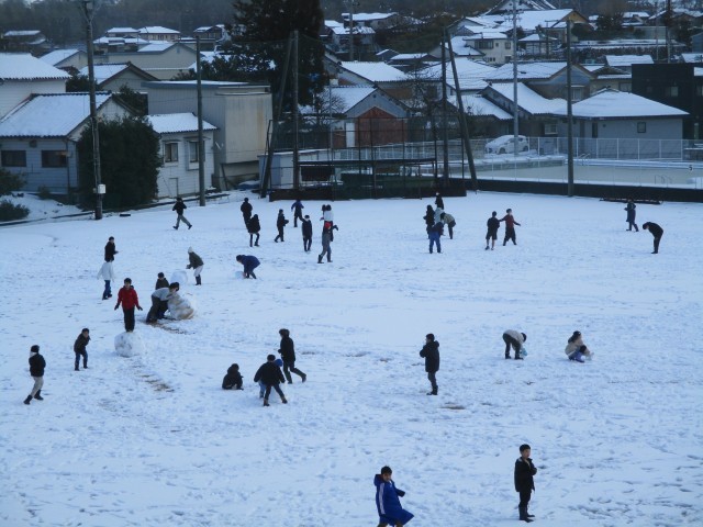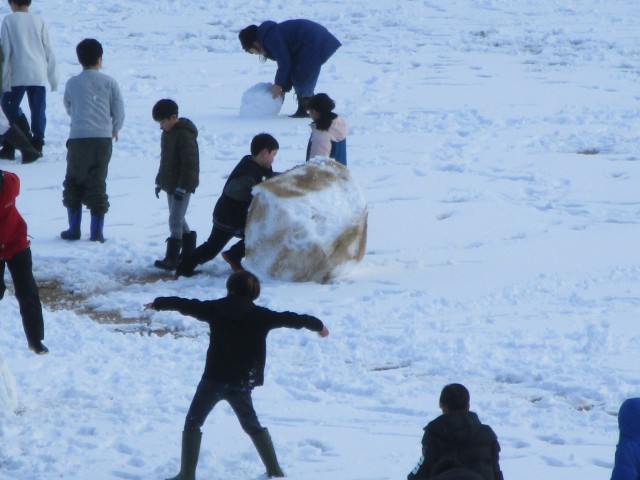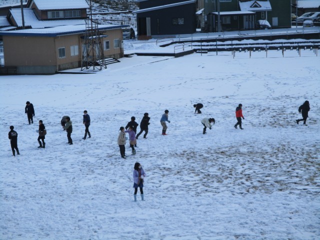 積雪は子供たちにとっては十分とは言えませんでしたが、昼休みにはこのように雪に触れる子がたくさんグラウンドに出てきました。