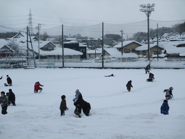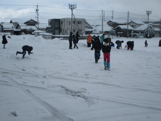 積雪50cmのグラウンド。グラウンドはまさに自然がプレゼントしてくれた「遊園地」と化しています。