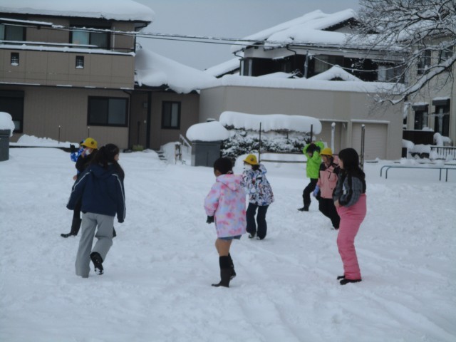 今日の休み時間も多くの子が雪に親しんで遊んでいました。
