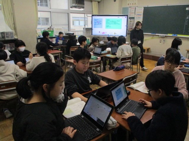 4時間目の学習の様子です。熊本からお招きした講師の先生に授業を見ていただきました。
