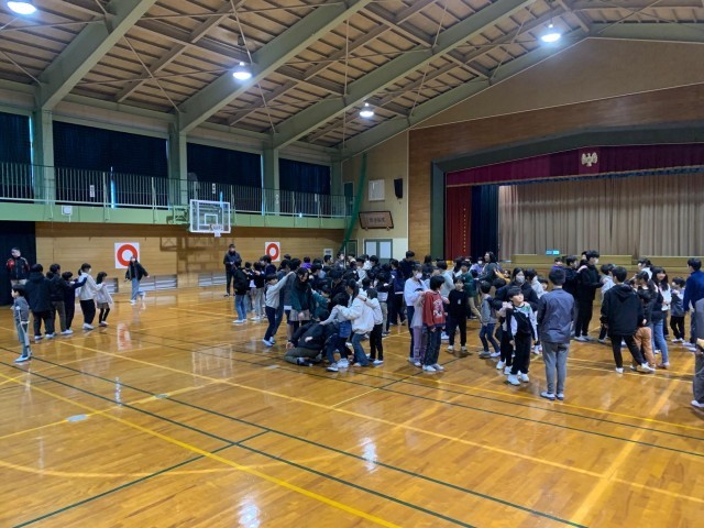 5年生のみんなが企画してくれた「今までありがとう集会」に参加しました。今回は、1年生と6年生で、大根ぬきやじゃんけんゲームをおこないました。卒業を前に、楽しい思い出を作ることができました。次回は3年生とのことです。楽しみにしています。
