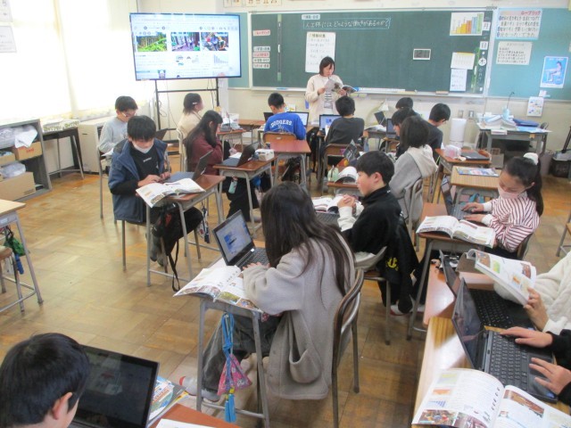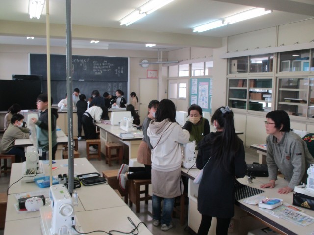 2時間目の学習の様子です。3組の家庭科の学習には、CSスタッフの皆様にランチョンマットの製作の支援をしていただいています。