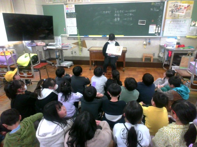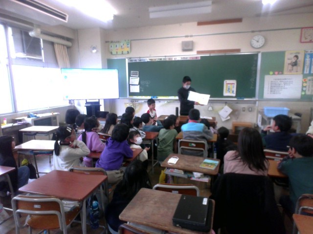 在校生のみんなに読み聞かせをして、感謝を伝えたいという思いを込めて、在校生プロジェクトの子供たちが2年生と3年生に読み聞かせをしました。どのクラスも、真剣な様子でお話を聞いていました。
