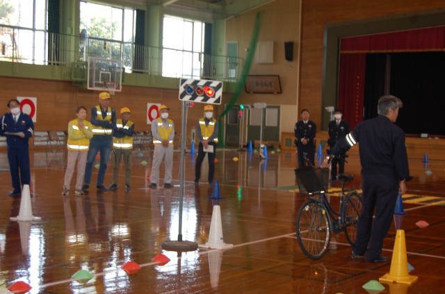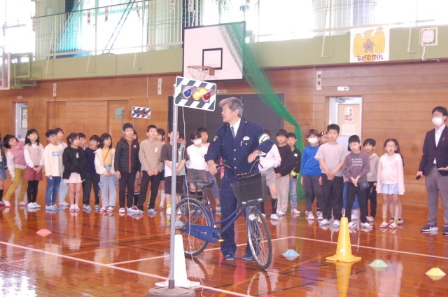 富山西警察署および呉羽交番の警察官、交通安全協会、交通指導員の皆さまの協力もと、自転車交通安全教室を実施しました。