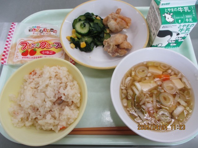 今日は1年生の入学と各学年の進級を祝う献立でした。