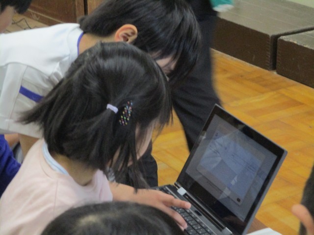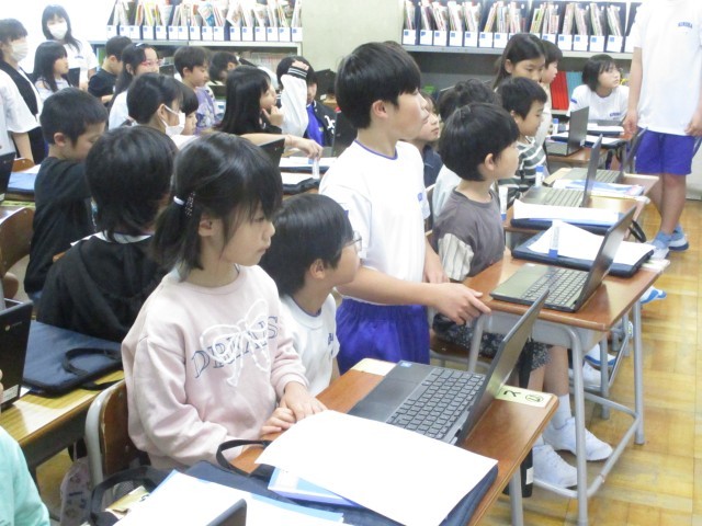 1年2組の児童に「クロムブック貸与式」を行いました。