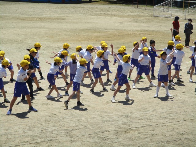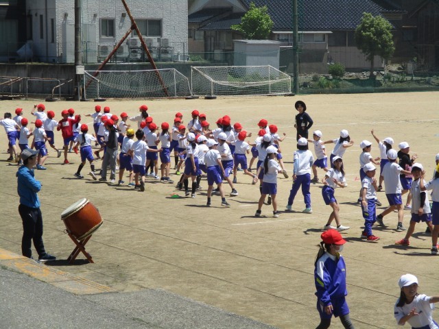 3時間目の学習の様子です。4年生と合同で、すもう体操の練習に励んでいました。