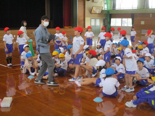 3時間目の学習の様子です。今日はグラウンド状況が悪かったため、体育館でリレーの練習に取り組みました。