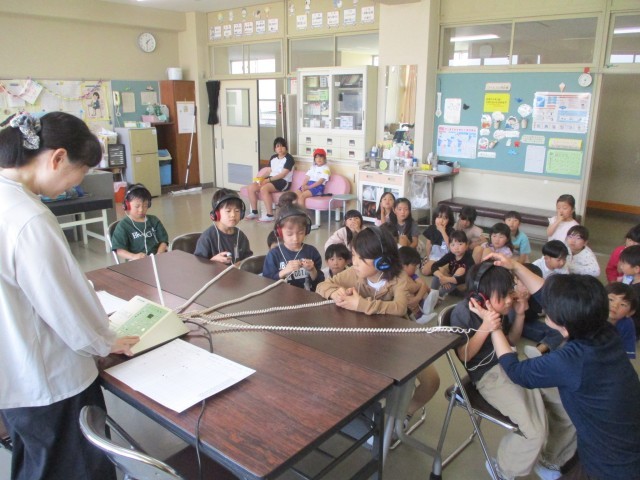 4時間目の学習の様子です。3枚目の画像は聴力検査の様子です。