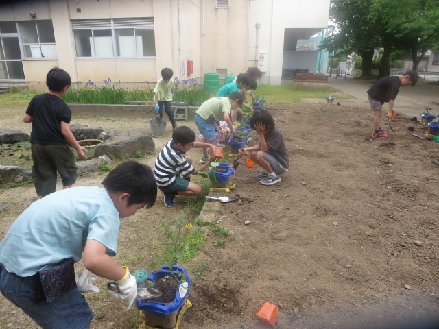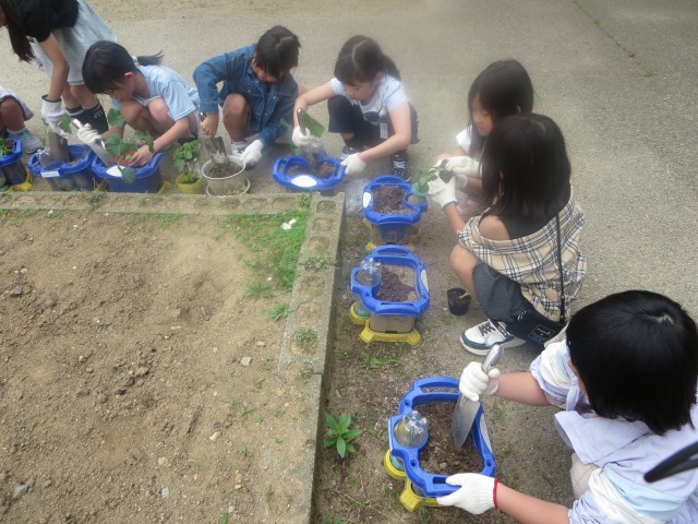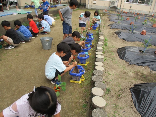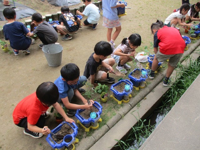早速野菜の苗をプランターに植えました。「明日から水やりがんばるぞ!」「くきが折れないように、大切にやらなくちゃ!」という子どもたちの素敵な姿がたくさん見られました。