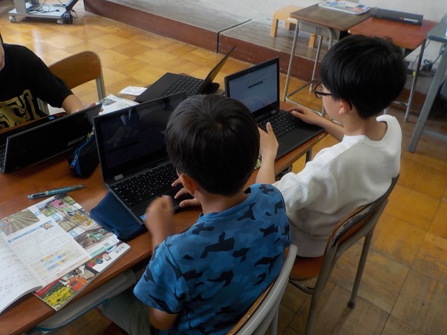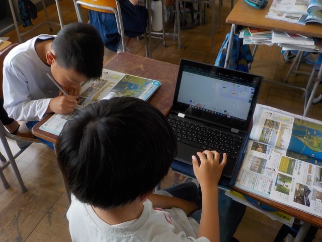 社会科の学習では、高い土地と低い土地についての学習をしています。それぞれの土地の困難を乗り越えて、どのような農業を行っているのか。どのような工夫をしているのかを調べ、友達といっしょに考えました。思考ツールを活用して、学習しています。