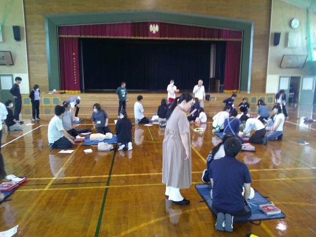 いよいよ6月。多くの子供たちが楽しみにしている水泳学習の始まりに備えて、救急救命講習を実施しました。
