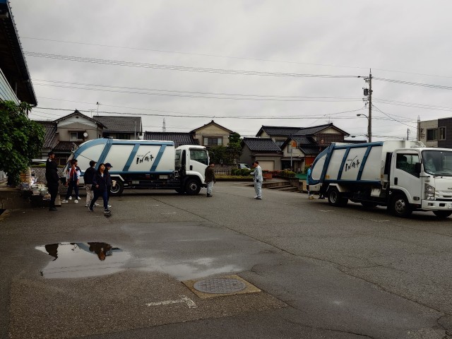 資源回収を実施しました。心配していた雨も降らず無事回収が進んでいます。