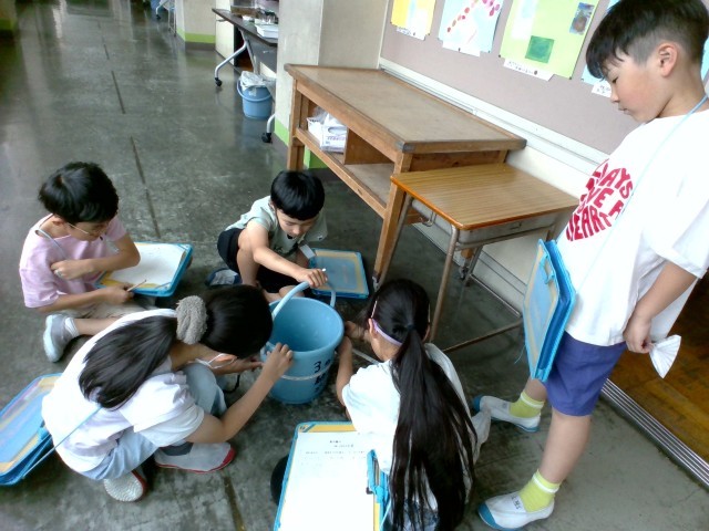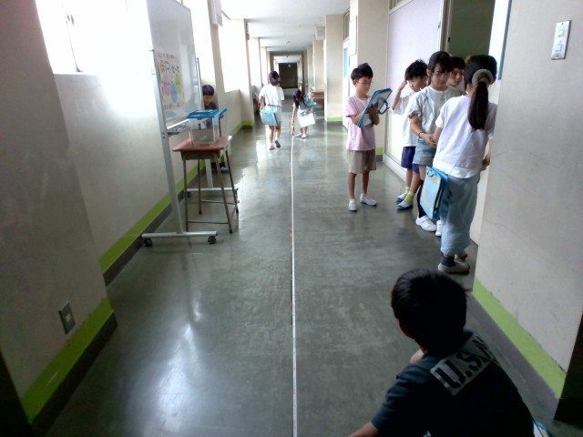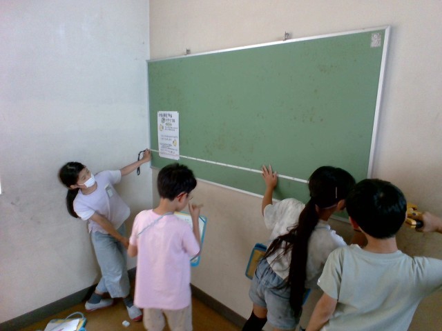 「教室の縦の長さは10mよりは短いと思う」「ろう下は30mより長いよ」などと見当をつけてはかっていました。