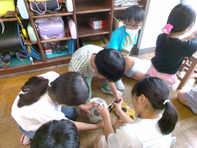 算数科の学習で、巻き尺を使って長いものや曲がっているものの長さを測りました。