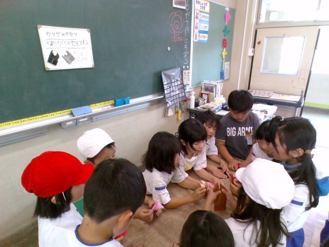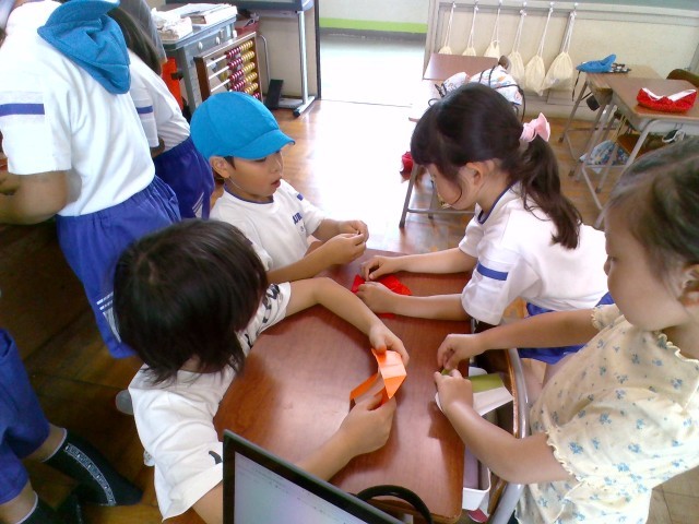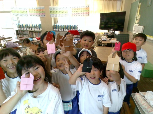今日は、折り紙係のおりがみ教室「かぶとむし」と運動係「ドッジボール」をしました。