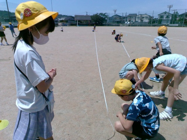 10mだと思う位置を予想し測ってみると「あと16cmだった!」という子から「20m超えてた!」という子まで。