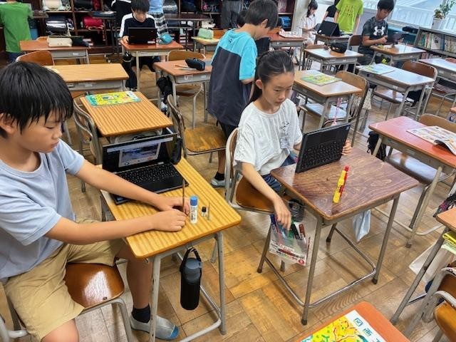図画工作科の時間では、コマ撮りアニメーションを制作しています。今日は「行進」をキーワードにして、アニメーションをつくりました。カメラアングルや、物の動かし方等を工夫してつくることができました。