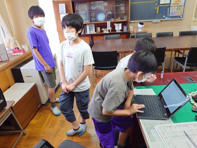 さっそくプロジェクト・リーダーが集まり、お昼の放送で流す放送原稿を協働編集で作成中です。(画像)