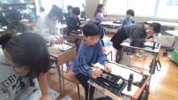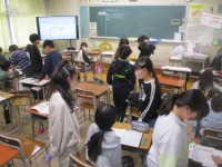 家庭科の時間には、教室や廊下、洗面所の汚れに合う掃除のしかたを調べ、実践しまし...