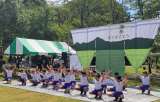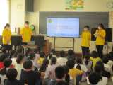 猛暑の中、4年生が伝統の相撲体操を披露し、高学年のSDGs委員会の代表者が学校で...